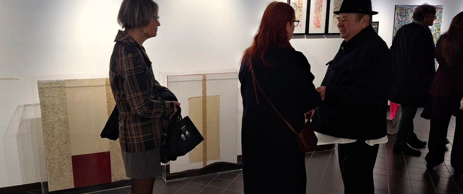 The design of the columns makes them invisible from certain angles, and the works appear to hover in space.